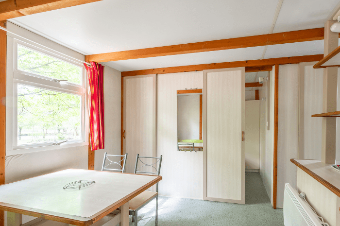 Le Campitel est un chalet offrant tout le confort d’un mobil-home, avec sa terrasse intégrée couverte.